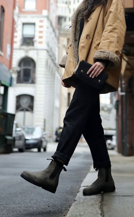 Vos Blundstone + un jean brut + un pull noir+ un manteau noir mi-long