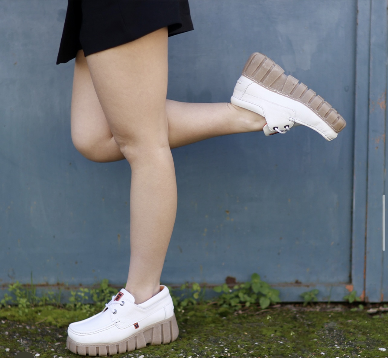 Ce modèle, c’est LE cracker des années 90 qui revient en force ! Avec sa semelle compensée à profil haut (5 cm) qui fonctionne comme un véritable trampoline, ces mocassins beiges offrent un style décontracté ultra tendance. Leur système d’élastique facilite l’enfilage et garantit un ajustement parfait.