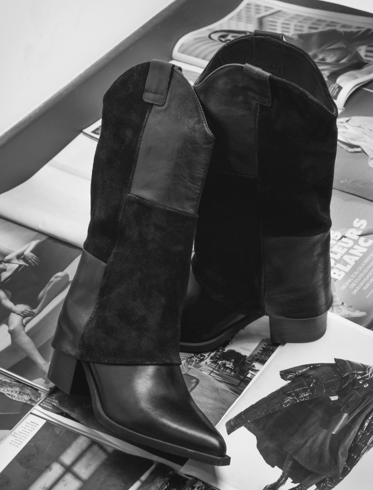 Conseil styling : Pour une interprétation moderne du style western urbain, associez ces bottes à une robe pull moulante s’arrêtant juste au-dessus du genou. Une ceinture western et une veste en jean vintage complètent l’ensemble. En version plus formelle, portez-les avec un pantalon cigarette noir rentré dedans, un blazer oversized et un body ajusté pour un look structuré adapté au contexte professionnel.