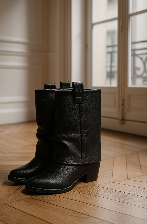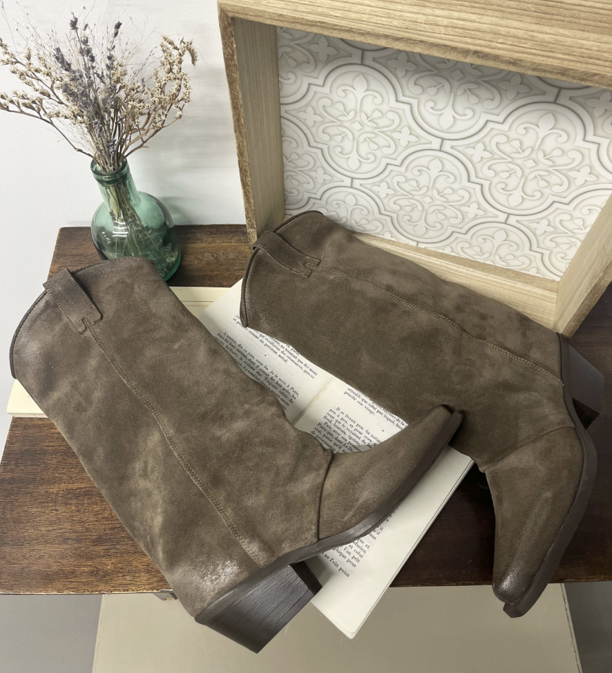 Les bottes à guêtres se reconnaissent à leur volume caractéristique sur la partie haute. Contrairement aux modèles ajustés, elles présentent une tige ample qui évoque les guêtres traditionnelles portées autrefois pour se protéger du froid et de la boue. Cette amplitude peut être travaillée par des fronces, des plis ou simplement par une coupe volontairement large. Le résultat : un style plus décontracté et bohème.