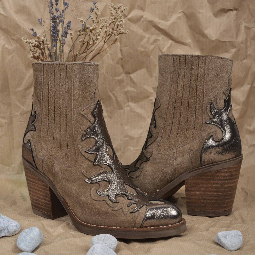 Cette bottine MKD joue sur les contrastes de matières avec une vraie maîtrise. Le design mélange les textures de façon intelligente, créant une bottine qui a de la personnalité sans en faire trop.