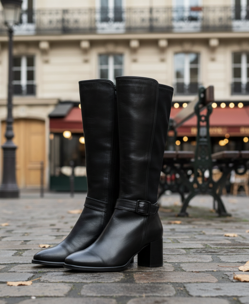 La Hilary 04, c’est notre botte coup de cœur absolu. Cuir lisse haute qualité, tige extensible qui épouse parfaitement le mollet, finition polie… Elle a ce truc en plus qui fait qu’on ne la quitte plus.