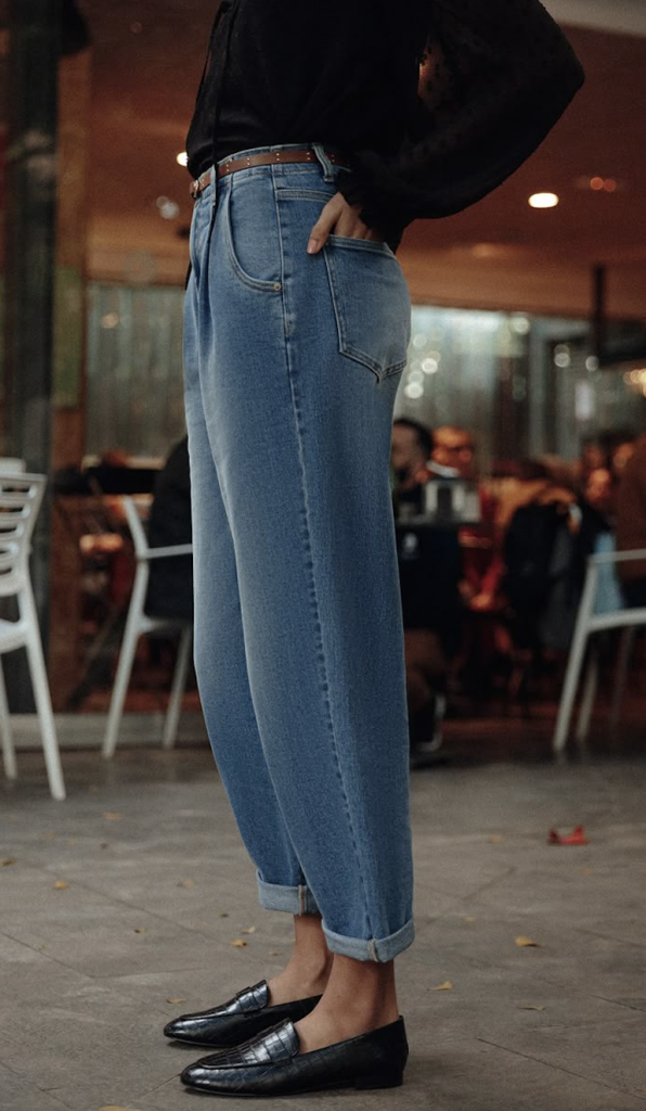 Le conseil look : Portez-les avec un jean ballon, un blazer oversize beige et un tee-shirt blanc légèrement rentré dedans. C’est ce mix parfait casual-chic parisien qu’on adore. Le léopard apporte juste ce qu’il faut de rock sans en faire trop. Le petit + ? Choisir un jean avec des gros revers pour un effet « retroussé » hyper tendance qui va mettre en valeur vos ballerines !