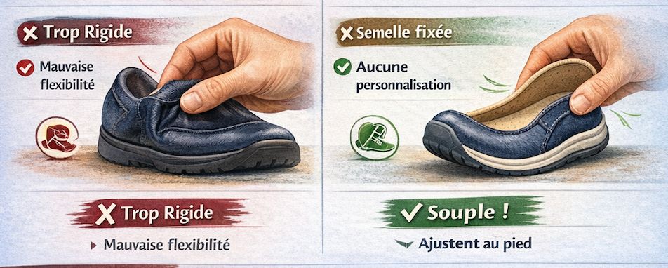 Astuce gain de confort : Même sans prescription médicale, investir dans une paire de semelles de qualité (mémoire de forme, gel, ou adaptées à votre type de voûte plantaire) peut transformer une chaussure correcte en chaussure exceptionnelle.